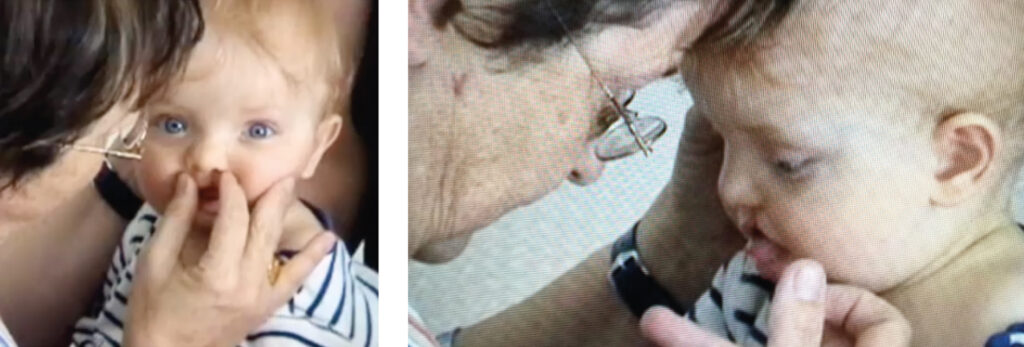 Der Säugling probiert also, das Fehlen von Etwas durch das Verlagern der Zunge dorthin auszugleichen – in diesem Fall zur Gaumenspalte.